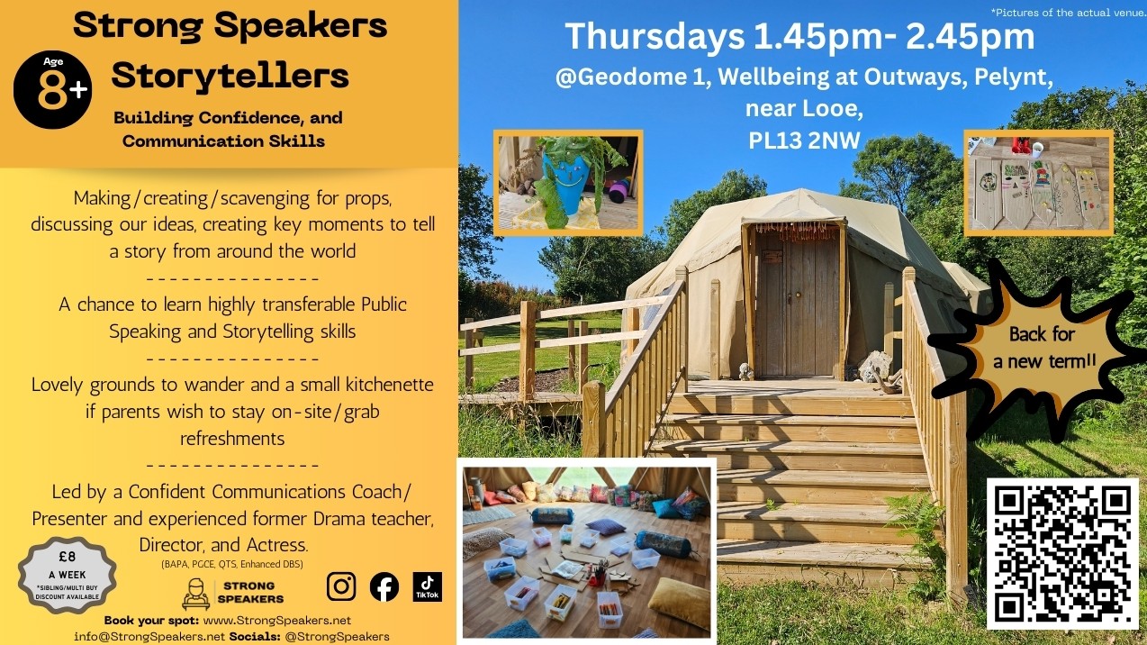 This class runs on Thursdays – 1.45pm to 2.45pm – Strong Speakers Storytellers, Wellbeing at Outways, Pelynt, nr Looe