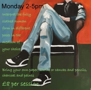 Sessions take place every Monday from 2pm to 5pm. Participants are asked to bring their own materials, such as paper, boards or canvas, and pencils, charcoal or paints.