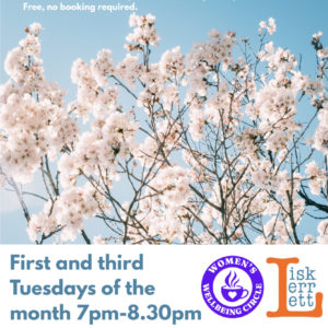 Women’s Wellbeing Circle is a Women’s Mental Health Drop that meets on the first and third Tuesday of the month from 7pm – 8.30pm.